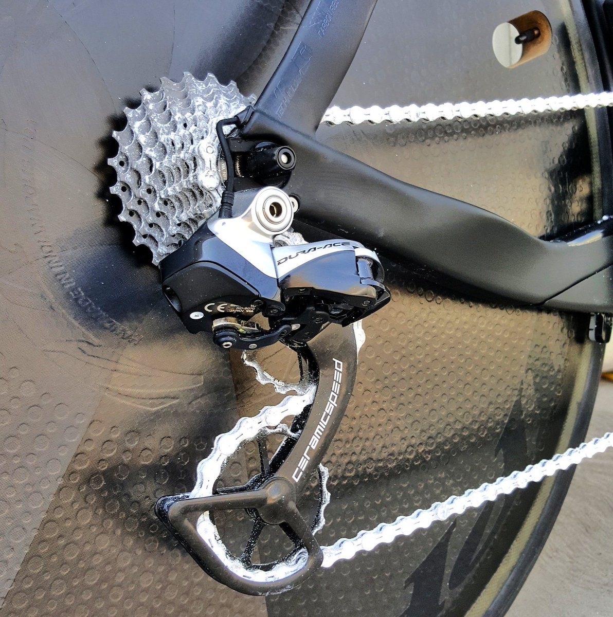 Prinsipnya mirip dengan lube chain keramik yang di atas, tetapi pada rantai keramik, seluruh badan rantai terlapisi keramik, sehingga warnanya juga putih seperti berkapur. Hanya memang perawatan untuk rantai keramik ini lebih hati-hati dan intensive, karena kita tidak mau kalau lapisan keramiknua hilang hanya gara-gara dicuci.