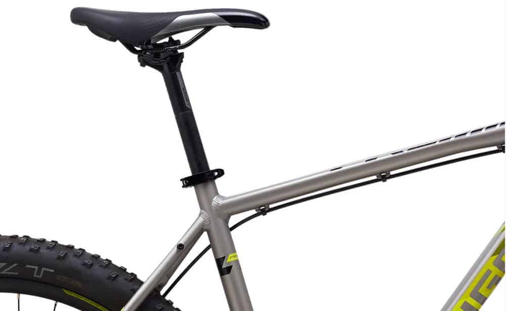 Seatpost diameter 27.2mm, panjang 350mm, dengan offset 15mm. Offset ini membuat posisi tempat duduk sedikit lebih mundur dari kelurusan tube/tiang seatpostnya. Sadel/dudukan Entity dengan sedikit lengkungan di tengah, terasa empuk dan tidak terlihat murahan.